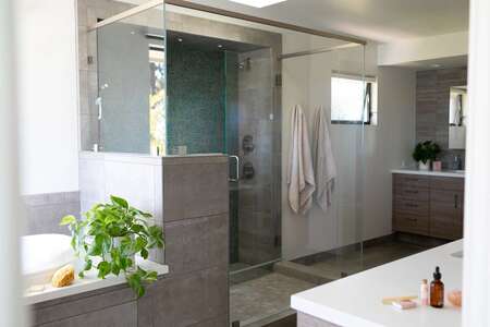 Kebanyakan orang lebih suka bilik pancuran yang besar dan lapang daripada bak mandi yang luas, tetapi khawatir dengan nilai jual kembali properti mereka jika tidak memiliki bak mandi. Jika Anda tidak dapat memutuskan di antara keduanya, pertimbangkan berapa banyak orang di rumah Anda yang mandi secara teratur, dan tanyakan pada diri Anda apakah memasang bak mandi dapat mengganggu kenyamanan bilik pancuran Anda.