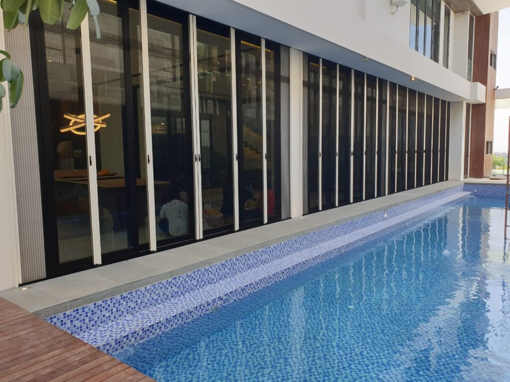 Memiliki halaman yang luas dengan akses kedalam ruangan yang terbuka? Kamu bisa menggunakan produk lipat door dan lipat window. Mengapa demikian? Halaman rumah biasanya dipenuhi oleh serangga dan hewan lainnya dan berpotensi dapat memasuki ruangan dengan mudah apalagi jika ruangan terbuka. Bentuk dari lipat door dan lipat window ini berupa mesh yang lentur dan dapat menghalangi serangga dan nyamuk memasuki ruangan. Produk ini memiliki kombinasi meah dengan berbagai warna, jadi tidak perlu khawatir akan estetika ruangan karena modelnya yang modern.