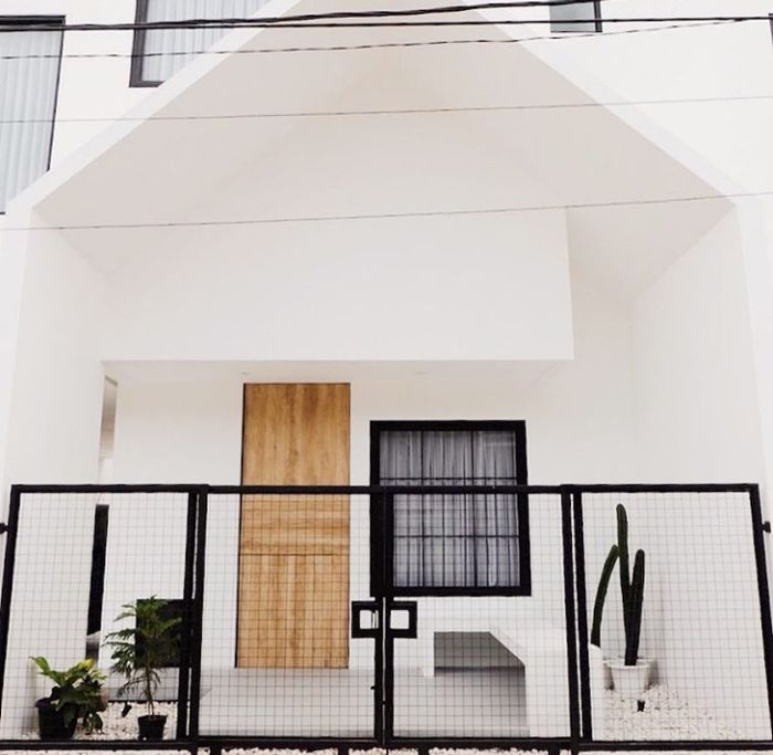 Konsep monokrom hitam putih dengan menggunakan sebuah konsep skandinavia ini terlihat sangat simple dan natural untuk sebuah rumah. Look fasad rumah dengan perpaduan warna hitam putih sangat menawan bagi kesan pertama.
