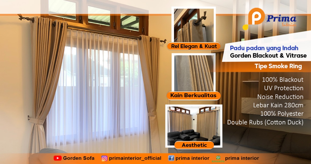 - Smokering : Menggunakan rail dengan cara memasukan gorden menggunakan bulatan-bulatan berbentuk layaknya cincin. Hal ini jauh lebih modern. Mudah digunakan dan cocok untuk rumah-rumah modern masa kini