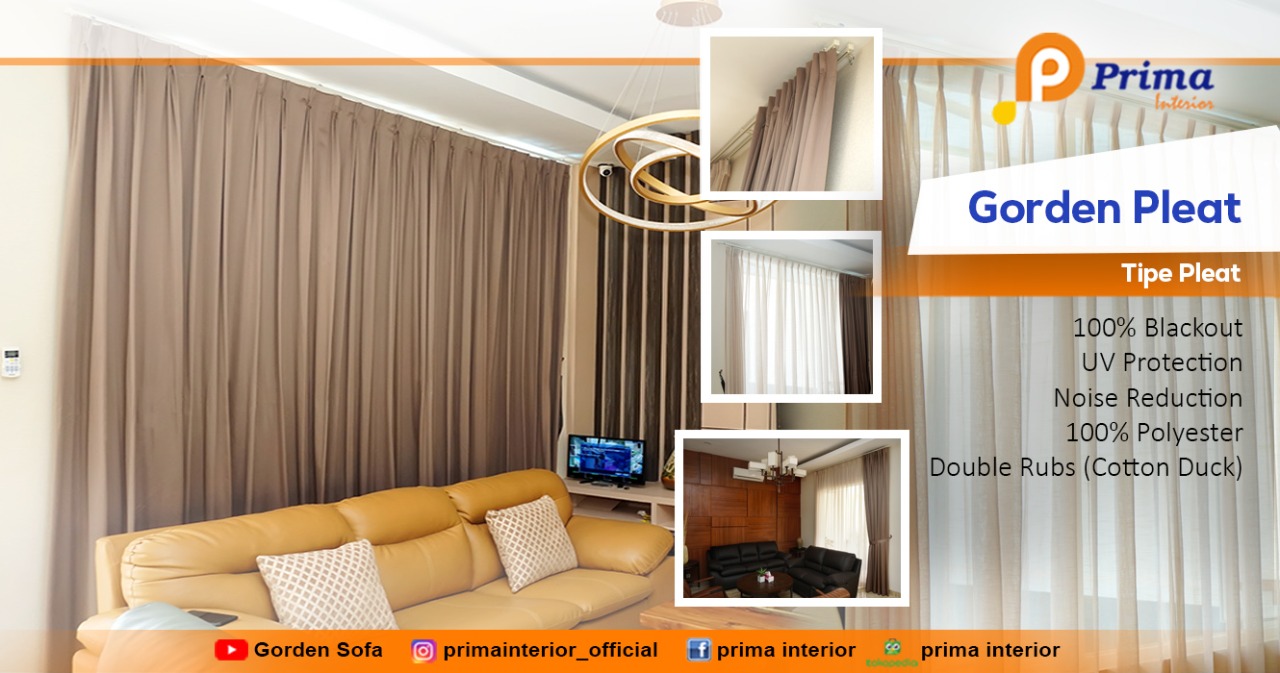 - Pleat : Memiliki lipatan yang simple berbentuk bunga mawar. Model ini merupakan salah satu jenis yang sangat klasik biasanya ada di rumah-rumah. Sudah sangat akrab dimiliki oleh beberapa orang.