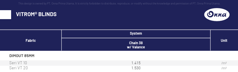 Dimout 85 mm Seri VT 10 Chain 38 with valance Rp 1.415.000,-/m2