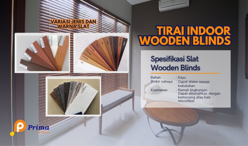 Horizontal blind yang terbuat dari kayu umumnya disebut sebagai wooden blind, di Prima Interior Pontianak ada beberapa material kayu yang bisa di gunakan, jenis kayu tersebut terbagi menjadi tiga yaitu local print, basswood print dan strachedwood print. Horizontal blind memiliki 3 ukuran slat yang bisa Anda pilih yaitu 25mm, 35mm dan 50mm. Berikut ini adalah harga wooden blind yang dimiliki oleh Prima Interior Pontianak :