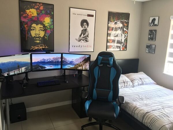 Sebuah kamar gamers yang simple, ini bisa menjadi pilihan yang sangat tepat. Maka dari itu tidak ada salahnya untuk membuat ruangan menjadi jauh lebih sempurna dan sesuai dengan kebutuhan. Model yang sangat simple cocok untuk yang suka kamar sederhana. Hal ini akan memudahkan para gamers untuk masih memiliki ruang gerak yang leluasa. Gunakan pula gorden blackout yang bisa membuat ruangan jauh lebih redup.