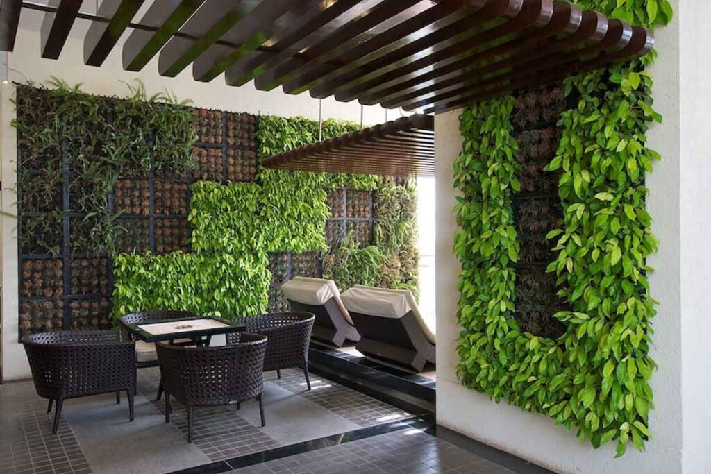 Unsur hijau pada taman vertikal garden ini memberikan efek yang menyegarkan, bahkan Anda dapat mengkombinaskannya dengan air mancur