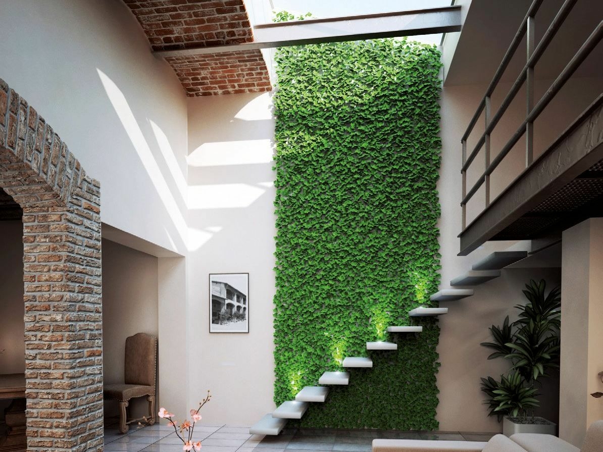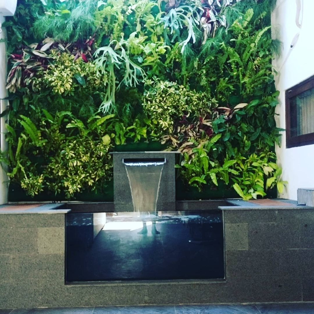 Unsur hijau pada taman vertikal garden ini memberikan efek yang menyegarkan, bahkan Anda dapat mengkombinaskannya dengan air mancur