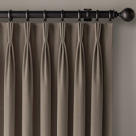 - Jahitan Lipat (Pleat Stitch) Jahitan lipat adalah jenis jahitan yang menghasilkan lipatan yang lebih besar pada gorden. Beberapa jenis lipatan yang umum digunakan antara lain lipatan tiga (triple pleat), lipatan dua (double pleat), lipatan ganda (box pleat), dan lipatan tak terlihat (invisible pleat). Jahitan lipat memberikan tampilan yang lebih terstruktur dan formal pada gorden, sering digunakan dalam desain interior yang lebih klasik atau kontemporer.