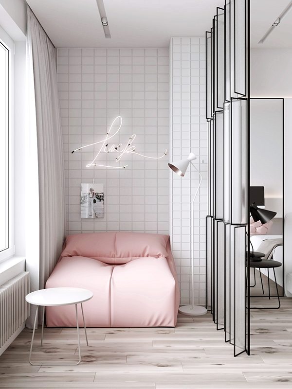 Sebuah kamar minimalis pink ini pada dasarnya menjadi sebuah pilihan paling tepat. Desain yang simple dengan bedroom yang minimalis tanpa dipan tinggi ini menjadi sebuah pilihan bagi yang ingin space ruang kanan kiri yang longgar.