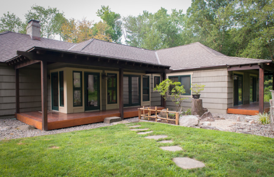 Gaya rumah Jepang sangat cocok untuk bentuk rumah kecil maupun besar. Salah satu elemen rumah modern gaya Jepang yang paling terlihat adalah minimisasi dinding dan partisi yang disebut engawa. Istilah ini menggambarkan ruang kosong antara bagian dalam dan luar. Metode ini tidak hanya memberi Anda lebih banyak ruang, tetapi juga memungkinkan Anda memanfaatkan cahaya alami ruangan secara maksimal. Rumahnya terang, luas dan terasa lebih nyaman.